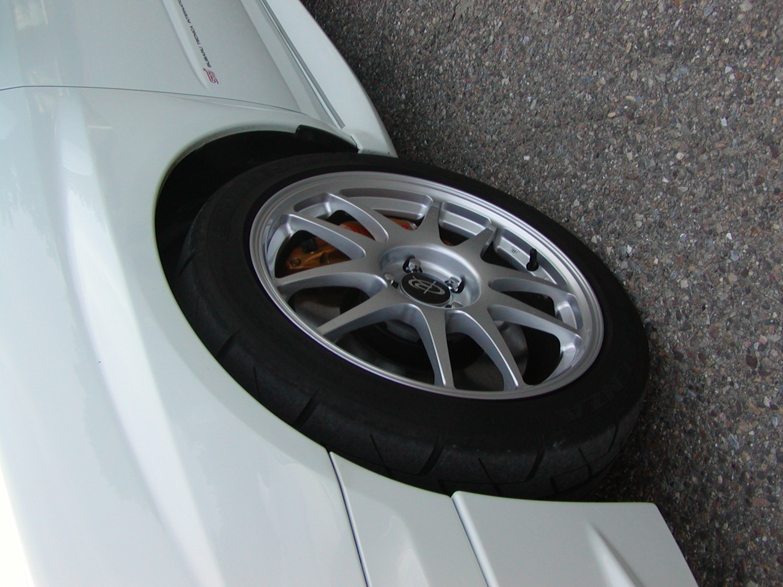 25-July-2004STi Photo Fest! Got together with Rob, Colin, and Ann for a little evening photo and grub fest. We snapped a few pics to show off our Rota Torque wheels. Rob's is the white STi with silver wheels, Colin's is the silver with bronze wheels, and mine if silver with gold wheels. Aren't we pretty :)