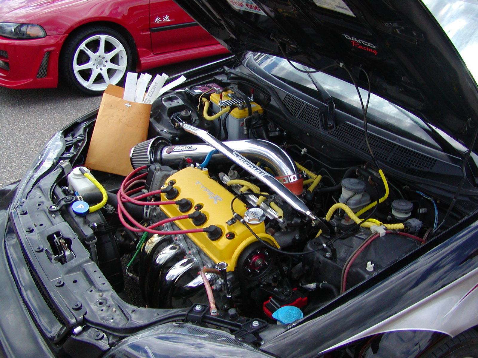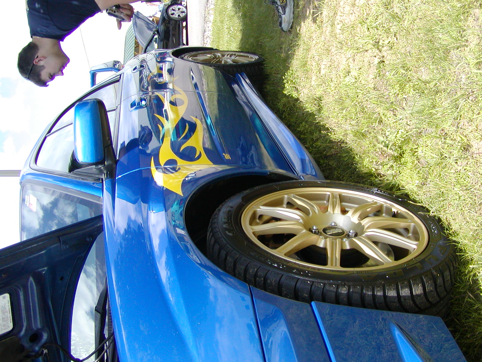 27-June-2004Car Show and Headlight Mods Met up with a few Subie peeps and went to a local import car show. After that, we headed over to Jason's house and dismantled my headlights, baked them, and took out the ugly orange reflectors. I also painted the little mesh screen in the upper grill opening silver.